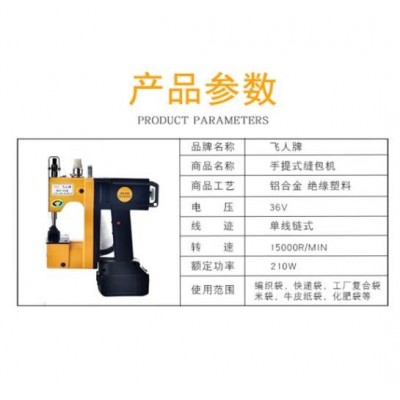 商品名称:飞人GK9-988手提式电动充电型缝包机锂电池封包机
