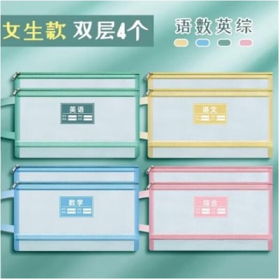 首页 > 办公用品 > 文件袋子 > 透明网格学科科目分类袋双层A4文件袋小学生试卷收纳袋拉链袋透明书袋课本分科学习资料手提袋 【双层女生款4个】