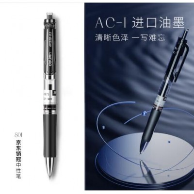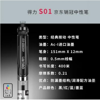 首页 > 办公用品 > 商务用笔 > 得力S01中性笔签字笔 0.5mm子弹头经典办公按动笔水笔 黑色 12支/盒